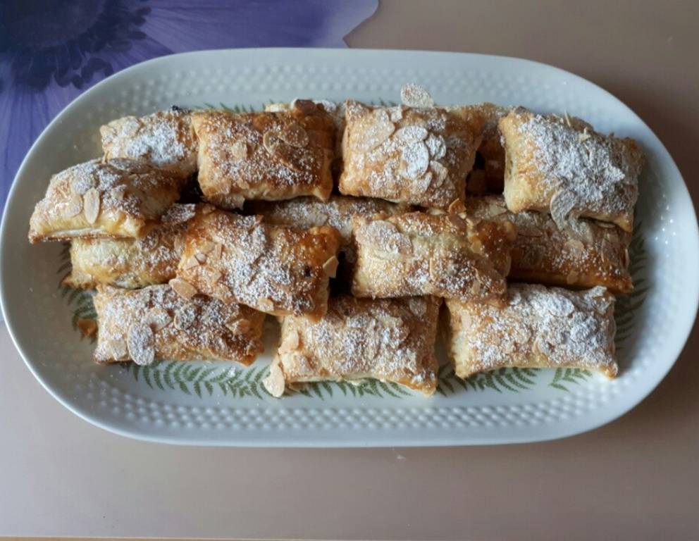 Die Bananen-Schoko-Tascherl eignen sich gut zum verwerten Schokoladeresten. Probieren Sie statt den Mandelblättchen Kokosraspel oder Krokant.