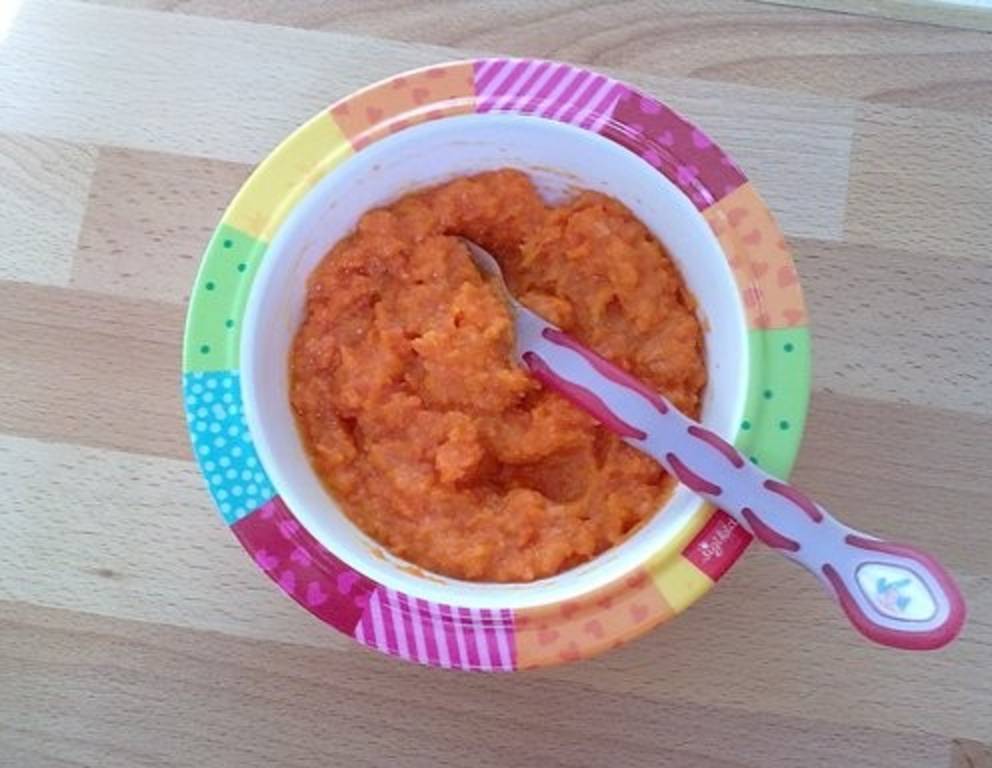 - Anschließend alles mit der Stufe 5 fein pürieren. Den Brei etwas abkühlen lassen und mit Öl verfeinern.