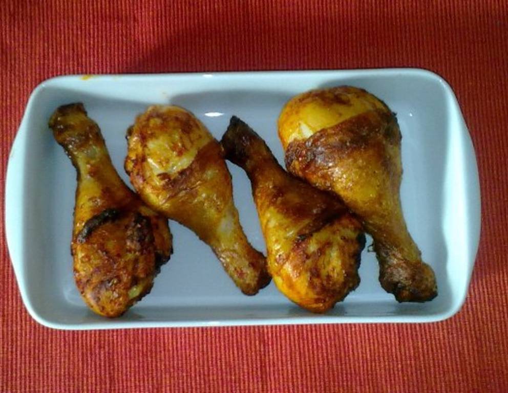 Die gebackenen Hühnerhaxen werden aromatischer, wenn man sie bereits am Vortag in der Marinade ziehen lässt.