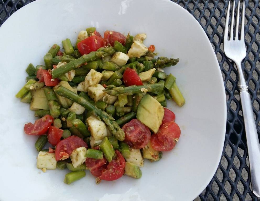- Tomaten halbieren, Mozzarella würfelig schneiden, die Avocados schälen vom Kern befreien und ebenfalls würfelig schneiden. Zum geschnittenen Spargel geben und mit dem Saft einer Zitrone vermischen.