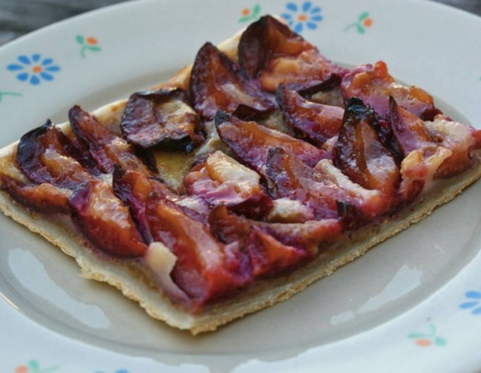 - Darauf die Zwetschken legen. Für den Guss Mehl, Eidotter, Zucker und Milch verrühren, bis ein flüssiger Omelettenteig entsteht. Den Guss auf den Zwetschken verteilen. Im Backofen bei 150 °C (Umluft) ca. 45 Minuten backen.