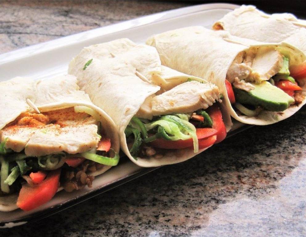 Statt mit Hühnerfilet kann man die Wraps auch mit Räuchertofu zubereiten.