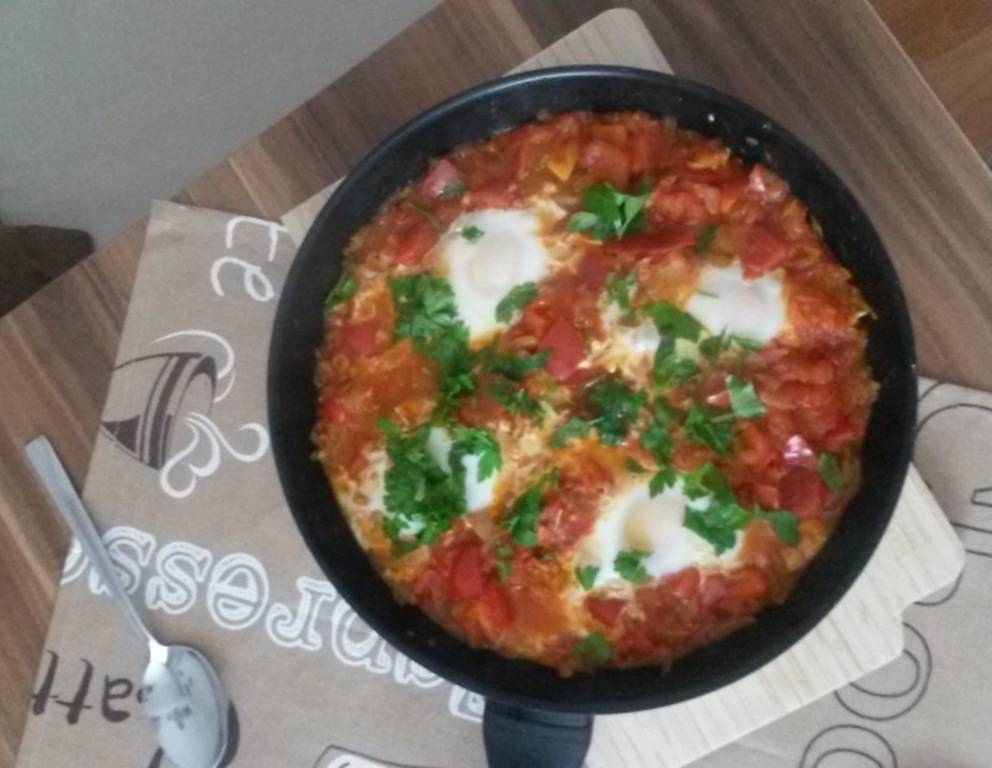 Shakshuka ist ein gesundes und kalorienarmes Essen für 2 Personen. Wer möchte kann noch Brot bzw. Gebäck dazu essen.