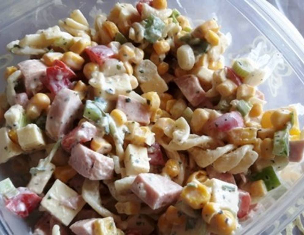 - Für den Nudelsalat Nudeln nach Packungsanleitung kochen. Paprika, Jungzwiebel, Käse und Wurst klein schneiden. Zusammen mit dem abgetropften Mais in eine große Schüssel geben.