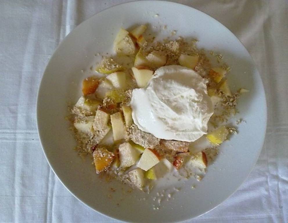 Das Obstfrühstück kann beliebig variiert werden. Mit etwas Zimt oder Vanille, etc. verfeinern.