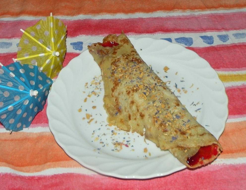Die Flower-Power Palatschinken können beliebig mit verschiedensten Füllungen und auch Saucen variiert werden. Evt. mit Eis servieren.