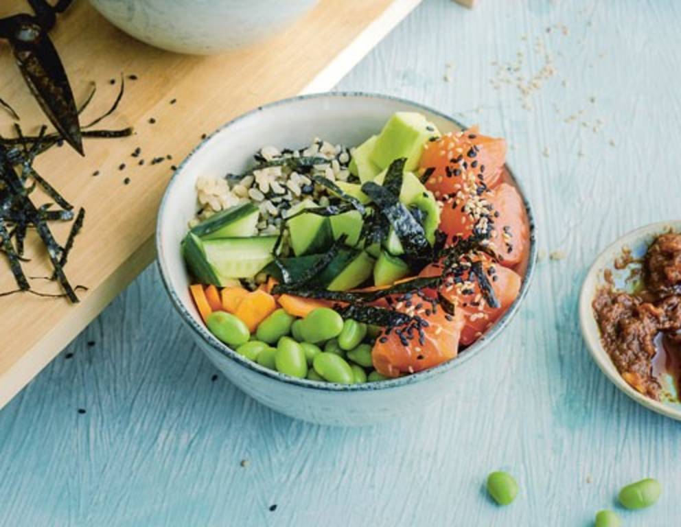 Sie können die Sushi-Bowl auch mit anderem rohen Fisch in Sushi-Qualität oder mit Garnelen zubereiten. Wer keinen Fisch mag, macht daraus ohne Lachs eine vegetarische Sushi-Bowl.