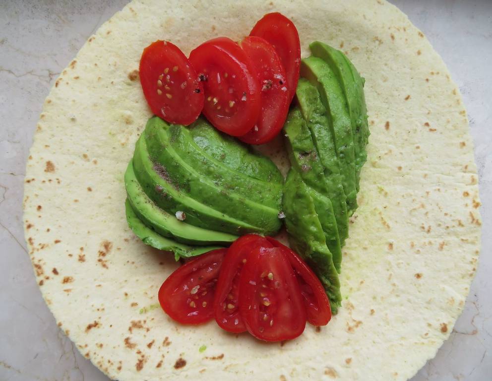 Die Tortilla mit Avocado und Tomaten kann beliebig noch ergänzt bzw. variiert werden.