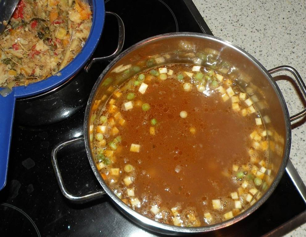 Man kann jede Suppeneinlage wählen. Diese Gemüsesuppe ergibt etwa 8 bis 10 Portionen und lässt sich gut auf Vorrat einfrieren.