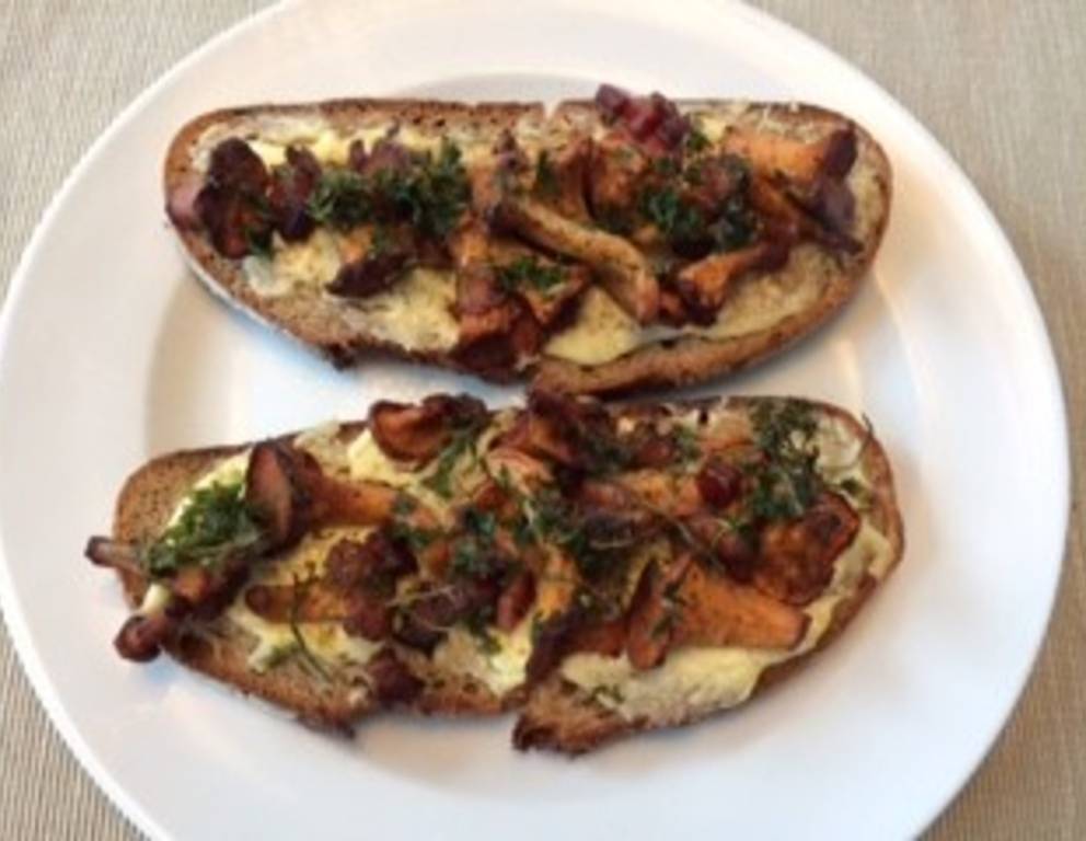- Für den Eierschwammerl Toast die Pilze putzen und allenfalls etwas zerkleinern. In einer sehr heißen Pfanne die Speckwürfel ohne Fett anrösten.