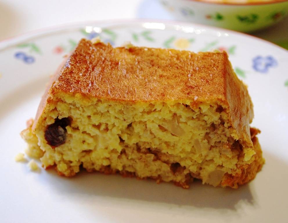 - Die ausgekühlte Hirse mit dem Abtrieb vermischen, Rosinen und den klein gewürfelten Apfel dazugeben. Eischnee vorsichtig unterheben und bei ca. 190 °C auf der mittleren Ebene des Backrohres backen.