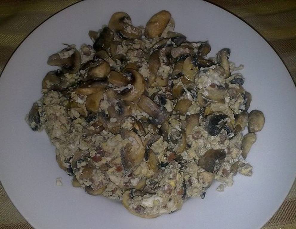 Zur Champignon Eierspeise passt frisches Weißbrot oder Kartoffeln. Mit frisch gehackter Petersilie verfeinern.