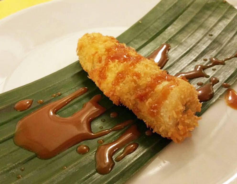 - Bananen auf Bananenblättern anrichten und mit dem Karamell beträufeln. Den Rest der Sauce separat zu den gebackenen Kokosbananen mit Kokoskaramell servieren.