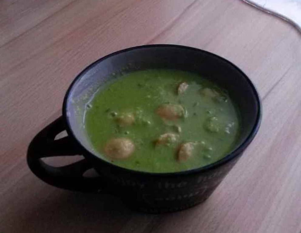 - Das Olivenöl in einem Topf erhitzen und die Frühlingszwiebel darin anbraten. Erbsen, Basilikum und die abgespülten Kichererbsen dazu geben und mit der Gemüsesuppe aufgießen. Etwa 5 Minuten mit Deckel bei mittlerer Hitze köcheln lassen.