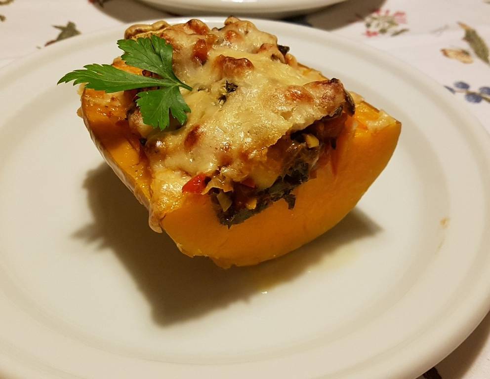 Überbackener Butternuss-Kürbis mit Feta schmeckt natürlich auch mit anderen Kürbissorten.
