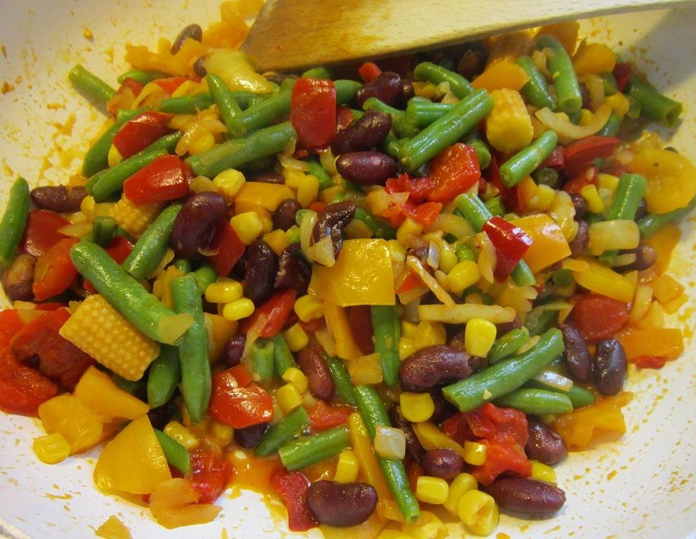 Die mexikanische Gemüsepfanne passt und Schweinefleisch oder einfach so als Veggie-Gericht.