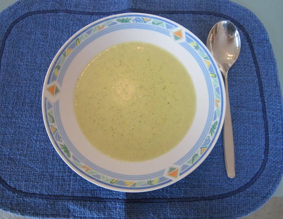 Die Zucchinicremesuppe evt. noch mit Kräutern (Schnittlauch, Petersilie, Kerbel,... was die Saison gerade hergibt) verfeinern.