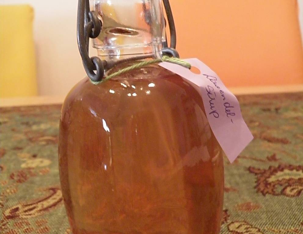 - Nach Ende der Ziehzeit den Sirup durch ein Mulltuch abseihen und nochmals kurz aufkochen. Anschließend in ausgekochte Flaschen füllen, sofort verschließen und den Lavendelsirup auf den Kopf gestellt auskühlen lassen.