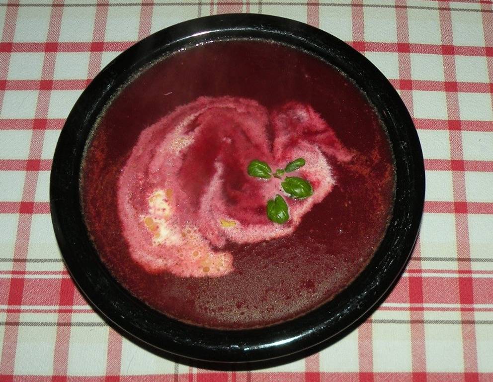 - Mit Salz, Pfeffer und Muskat (oder Kümmel) abschmecken. Die Rote Rüben-Suppe mit einem Klecks Sauerrahm servieren.