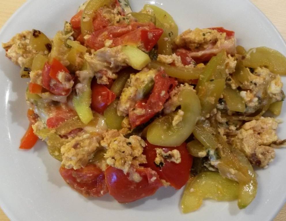 Die vegetarische Gemüsepfanne kann mit beliebigen Gemüsesorten zubereitet werden. Mit frischen Kräutern verfeinern. Statt Gouda bringt etwas Feta oder Schafskäse eine mediterrane Note ins Gericht.