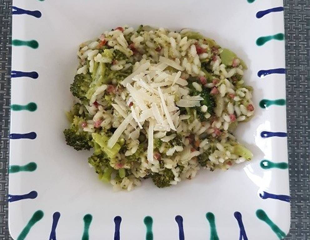 Das Brokkoli-Zitronen Risotto kann auch mit kleinen angebratenen Speckwürferln verfeinert werden.