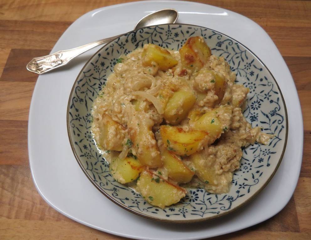 - Die Cashew-Kartoffeln anrichten und servieren.