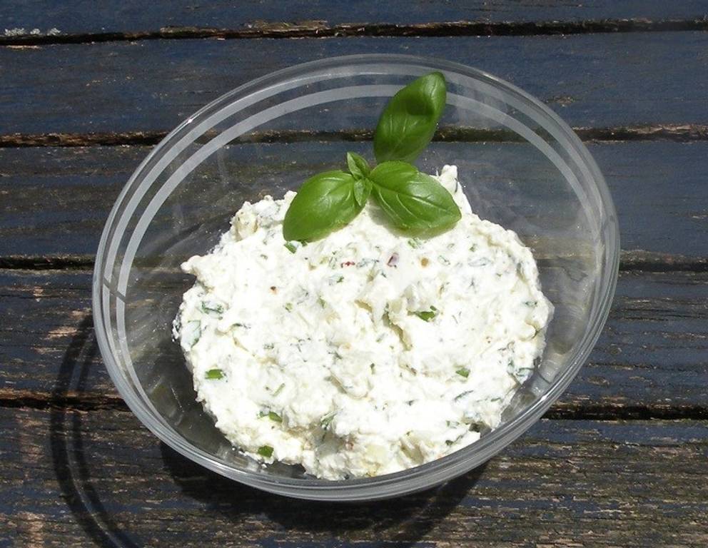 - Die Kräuter gut waschen und fein hacken, den Zwiebel kleinschneiden und mit Öl, Pfeffer und Salz unter den Frühlingskräutertopfen rühren.