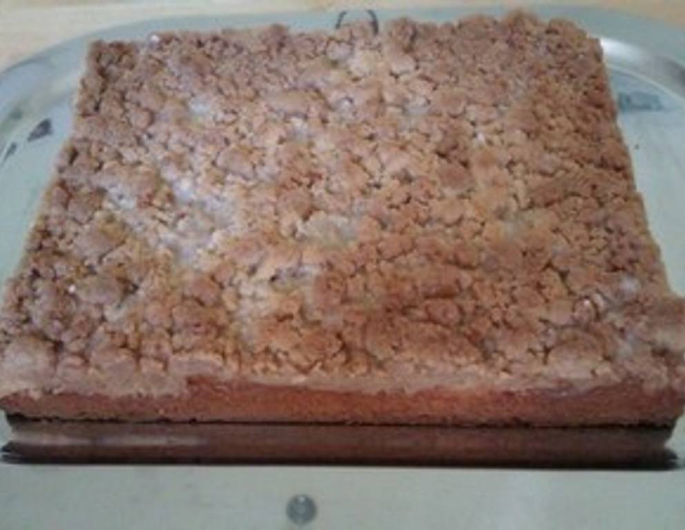 Den Butter-Streuselkuchen kann man auch mit Früchten zubereiten. Oder mit Kompott servieren.