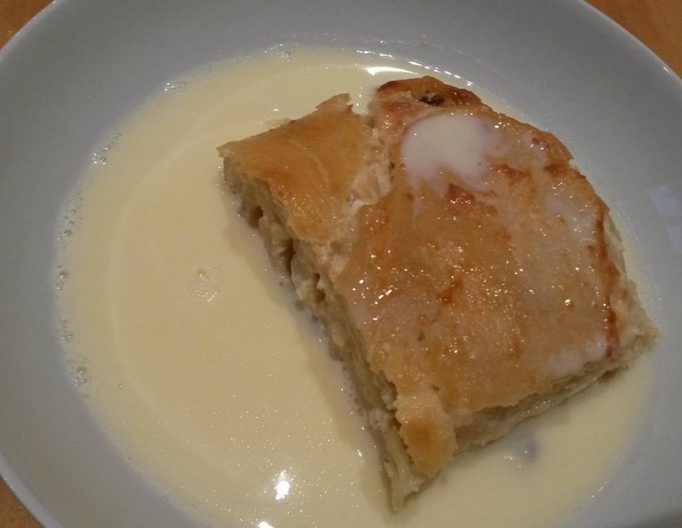 Den Milchrahmstrudel mit Vanillesauce nach Belieben ohne Rosinen machen.