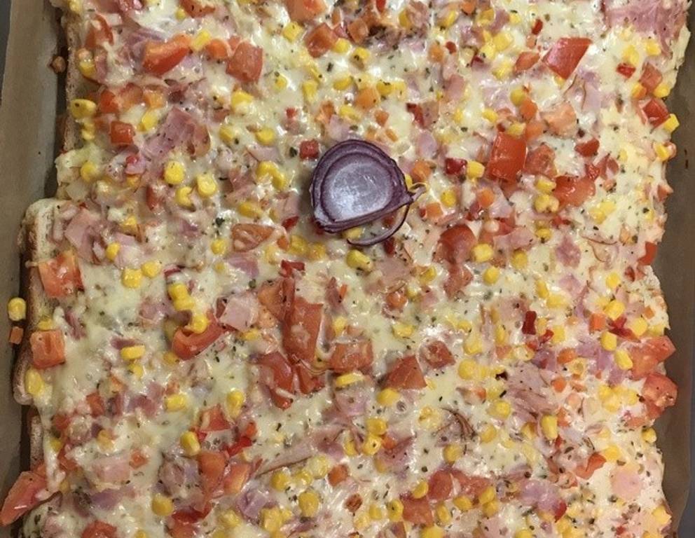- Mais, Tomaten, Zwiebel, Schinken und Käse gut unterrühren Salz und Oregano untermischen. Toastbrotscheiben dicht nebeneinander auf ein Backblech legen. Die Eier-Mischung darüber verteilen und das Schinken-Mais-Pizzasandwich im Ofen bei 180 °C Ober-/Unterhitze ca. 15 Minuten backen.