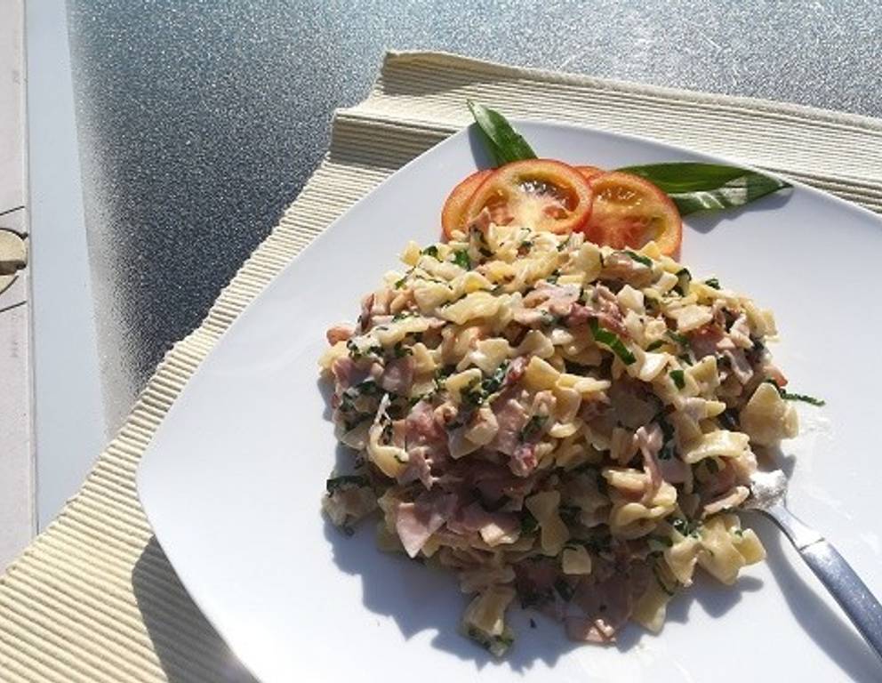 - Mit Pfeffer würzen und die Bärlauch-Schinken-Fleckerl servieren.