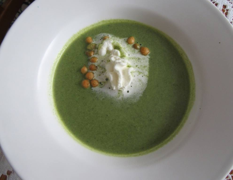 Die Bärlauch-Cremesuppe mit selbstgemachten Backerbsen aufpeppen.