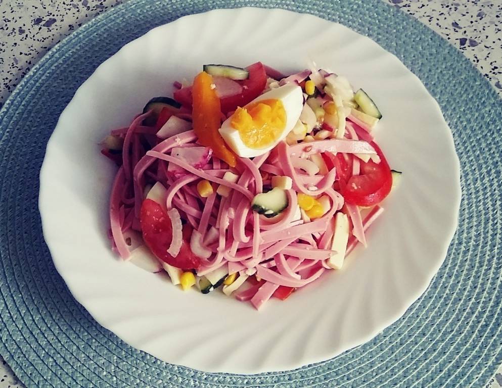 Die Zutaten für den Gemüse-Wurstsalat gut miteinander in einer großen Salatschüssel vermengen und ca. 2 Stunden kühl stellen, bis die Aromen sich miteinander verbunden haben. Der Gemüse-Wurstsalat kann mit beliebigen Zutaten zubereitet werden. Er eignet sich auch sehr gut zum Restlverwerten.