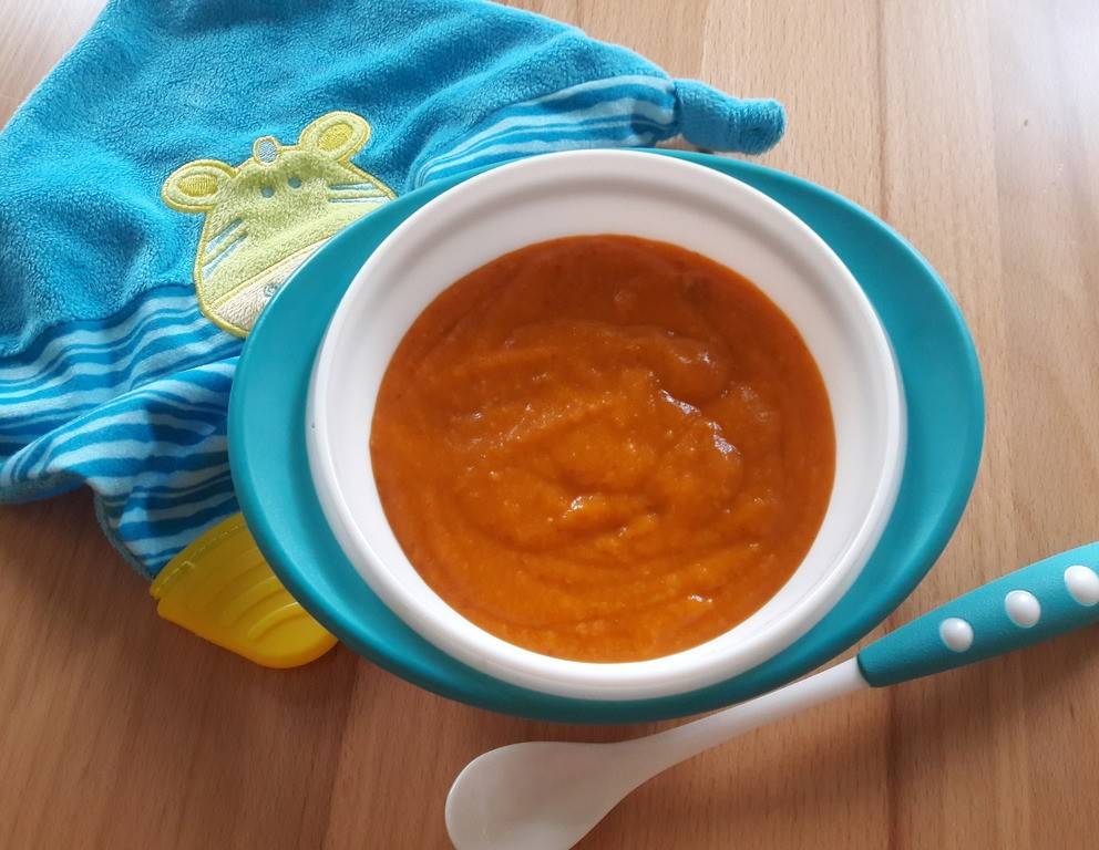 Babybrei mit Vollkornnudeln, Tomaten und Karotten ist für Babys ab dem 7. Monat geeignet.