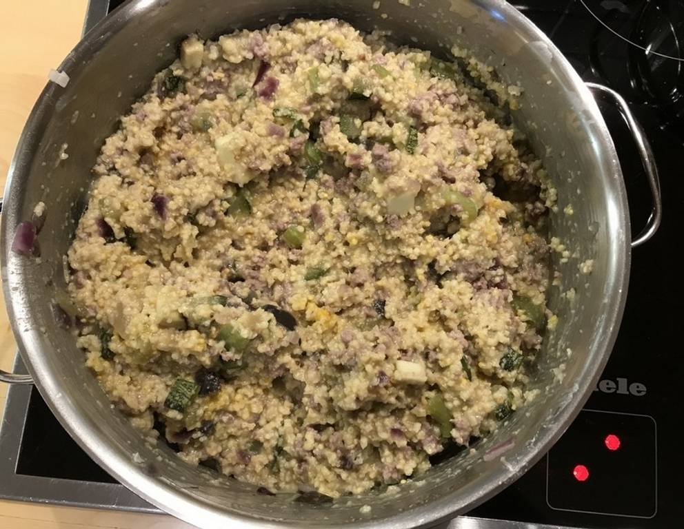 Verfeinern Sie die Hirse mit Faschiertem und Gemüse mit frischen gehackten Kräutern. Das Gemüse kann nach Belieben variiert werden.