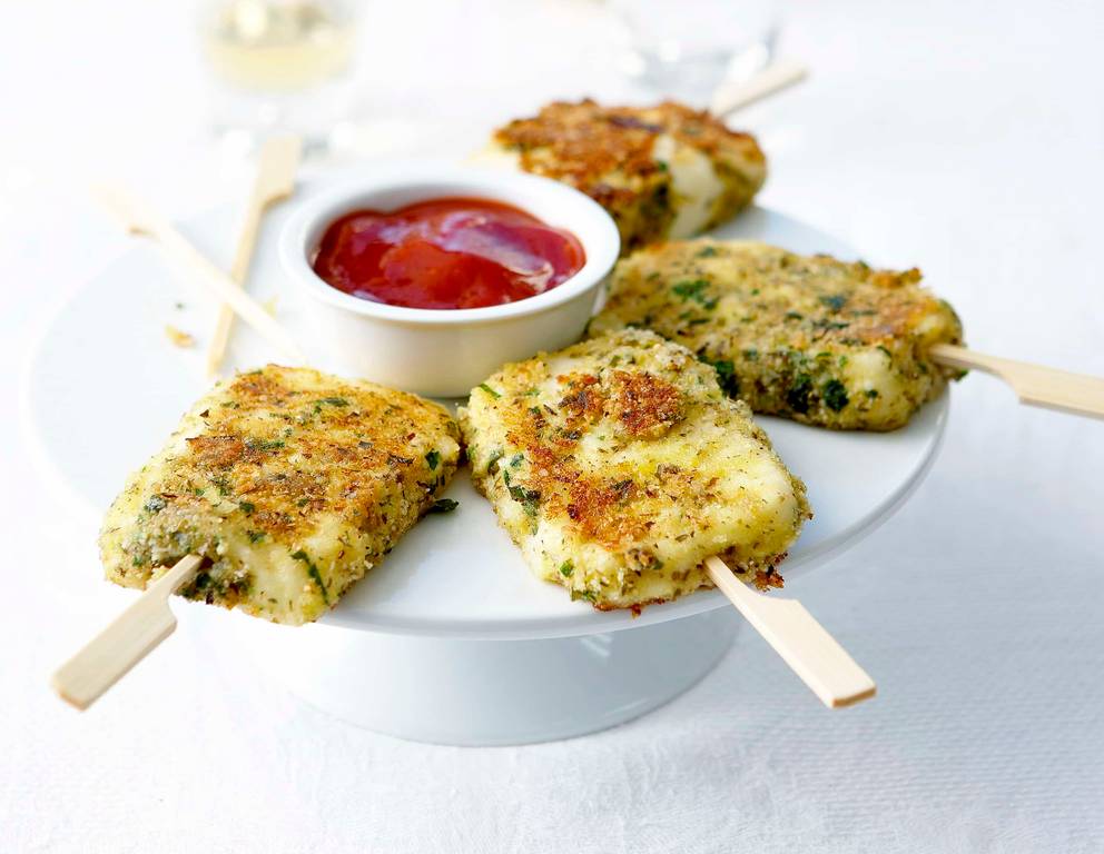 - Auf Spieße stecken und Mozzarellasticks mit Ketchup servieren.