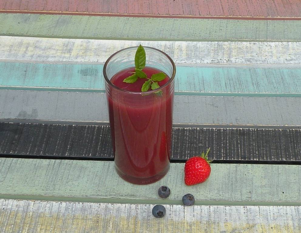 Sie können für den Erdbeer-Heidelbeersmoothie anstatt Traubensaft auch Apfelsaft verwenden.