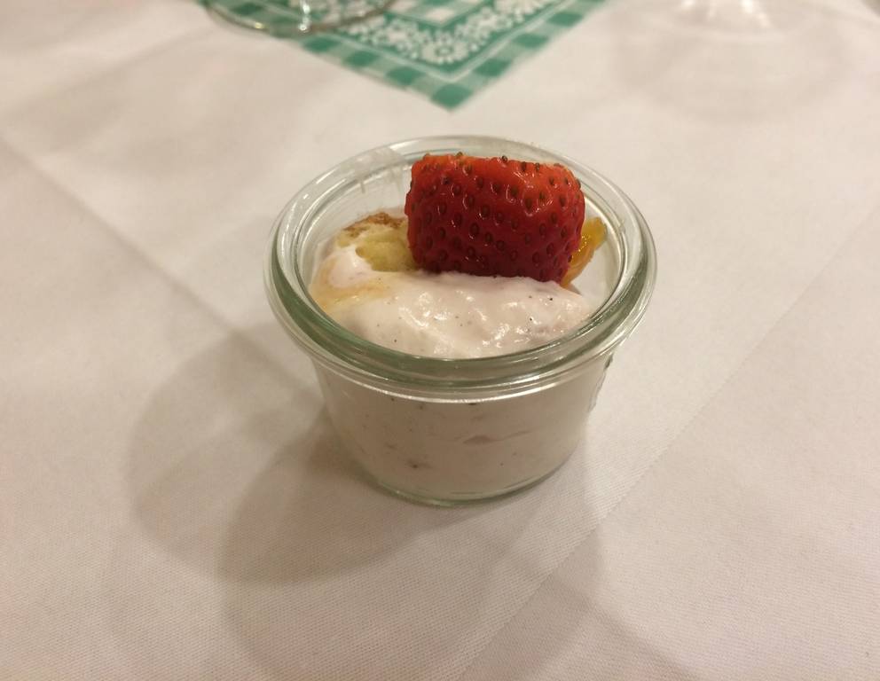 - Für die Erdbeercreme im Glas Mascarpone, Joghurt, Zucker, Zitronensaft und Salz vermengen. Erdbeeren waschen, 2 schöne Erdbeeren vierteln und zur Seite stellen, den Rest pürieren und zur Joghurtcreme geben.