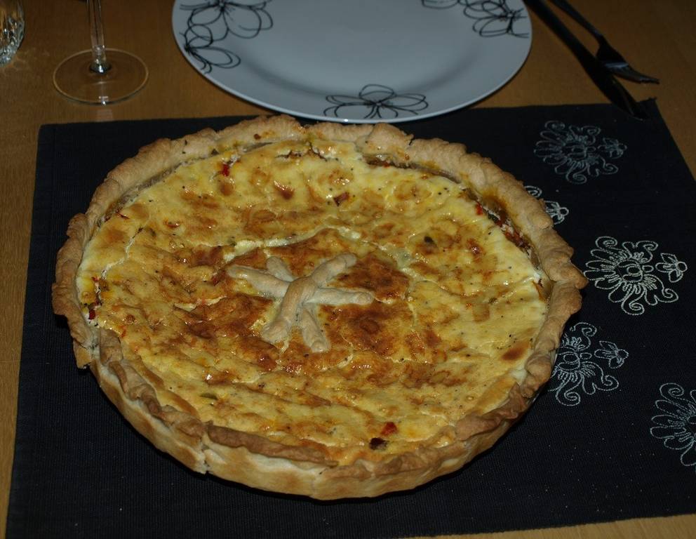 Teigreste für eine Verzierung der Paprikaquiche verwenden.