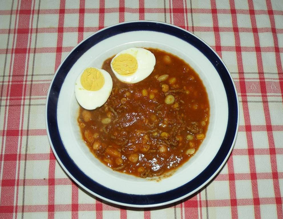- Den Gartenboheneintopf mit hartgekochtem Ei servieren.
