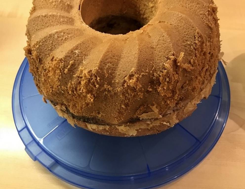 Den Zitronen Gugelhupf mit Glasur überziehen und zum Beispiel mit gehackten Pistazien oder Kokosraspel bestreuen.
