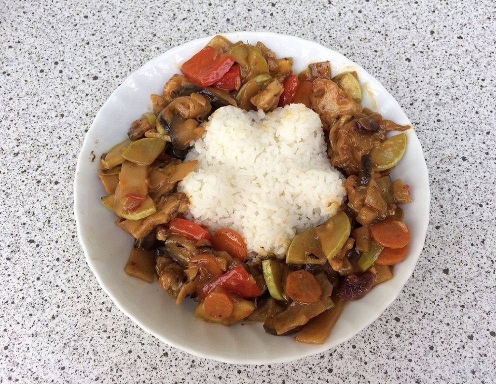 Das Curry-Madras mit Reis kann auch mit anderen Fleischsorten zubereitet werden.
