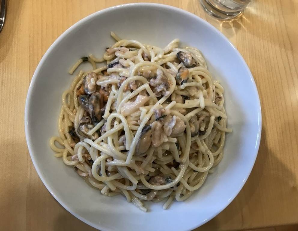 Zitronensaft und Obers zugeben und auf kleiner Flamme ca. 5 Minuten leicht köcheln lassen. Spaghetti abseihen und gut mit den Meeresfrüchten vermengen.