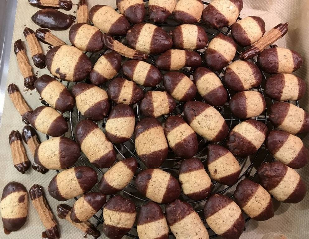 Für die Schoko Nuss Stangen können auch geriebene Haselnüsse verwendet werden.