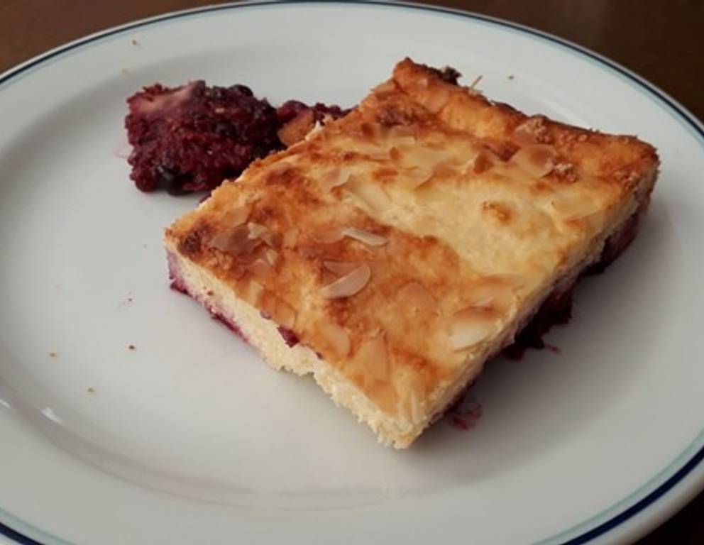 Den Beeren-Topfenauflauf anrichten und servieren.