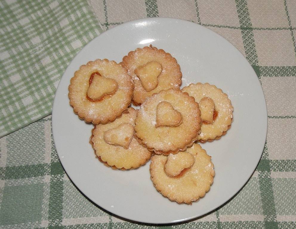 Bei 180 Grad die Scheiben etwa 12 Minuten hellbraun backen, dann je zwei Scheiben mit Marillenmarmelade zusammenkleben und jeweils noch ein Herzerl oben daraufsetzen.