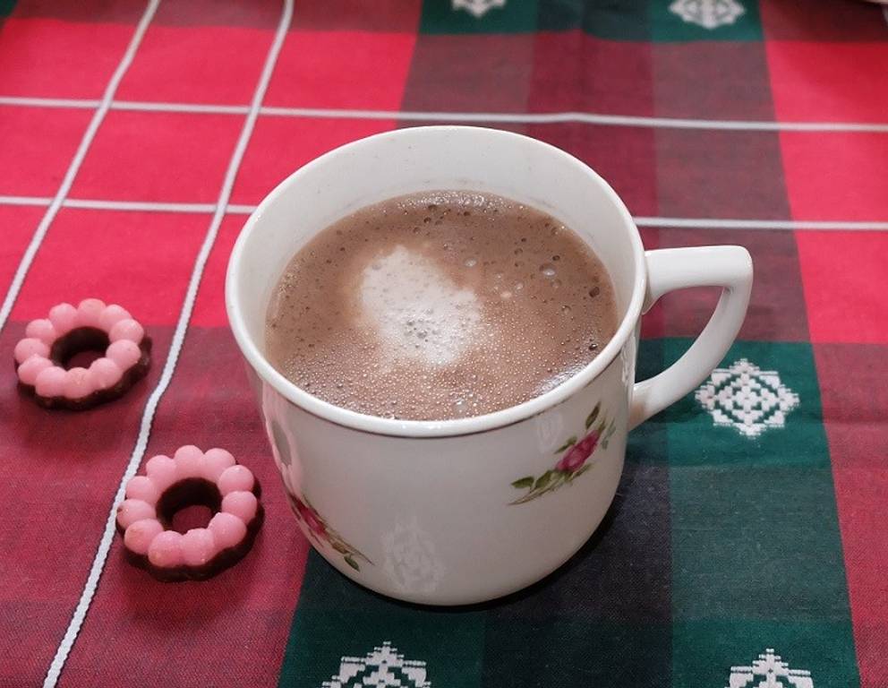 Dazu nimmt man Zucker nach Belieben, oder auch ein Schlückchen Rum.