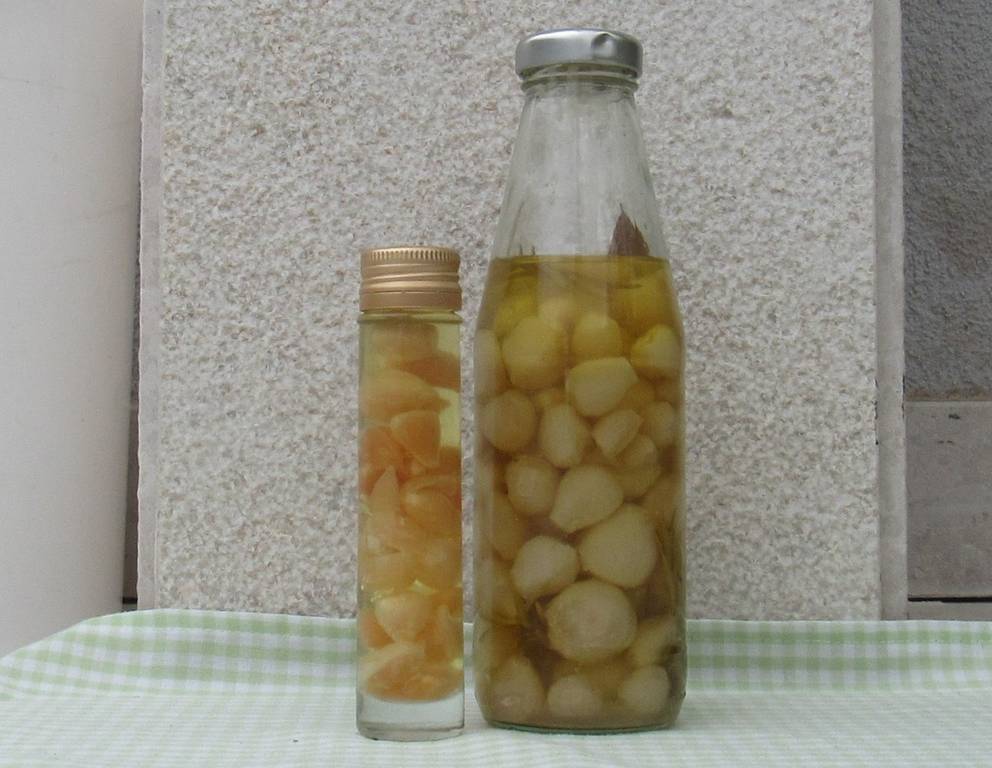 Das Knoblauch Öl hält dunkel gelagert bis zu 1 Jahr.