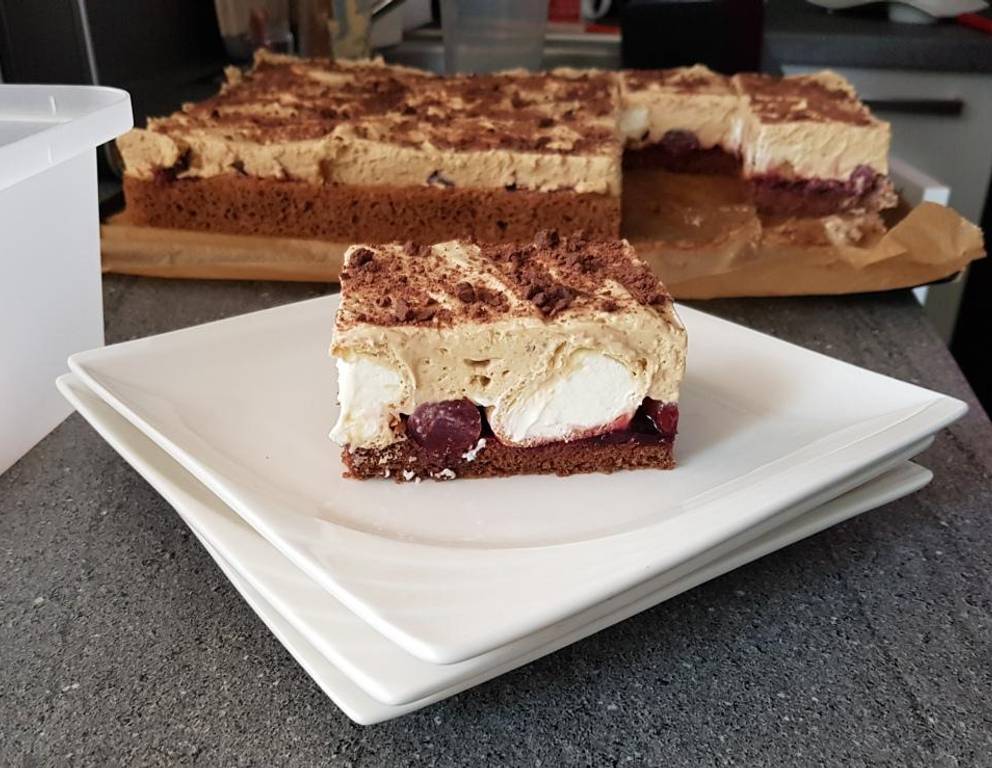 Probieren Sie den Kuchen anstatt mit Kaffeecreme mit Kakaocreme.