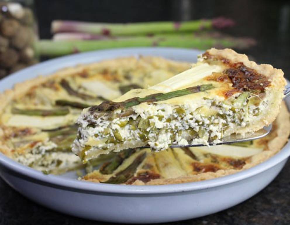 Verfeinern Sie die Quiche mit gebratenen Speckwürfeln.